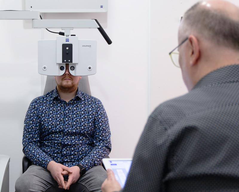 Ein leicht nachvollziehbares Beispiel hierfür sind die Anforderungen, die sich aus der Tatsache ergeben, dass jeder Mensch unterschiedliche Gesichtshälften hat. Da das menschliche Auge als hochempfindliches Sinnesorgan jede kleinste Differenz wahrnimmt und auf Dauer mit Sehbeschwerden und Ermüdungserscheinungen quittiert, ist es erforderlich, alle relevanten Parameter zu berücksichtigen. So erfassen wir für die individuellen Brillengläser ZEISS Individual® mehr als nur Ihren ganz persönlichen Augenabstand. Denn erst die Berücksichtigung individueller Maße macht spontanes und besonders bequemes Sehen in allen Entfernungen möglich.